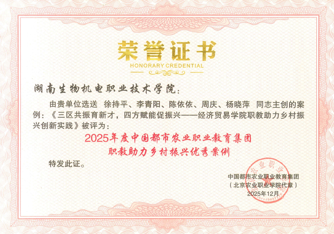 经济贸易学院作品获评中国都市农业职业教育集团职教助力乡村振兴优秀案例