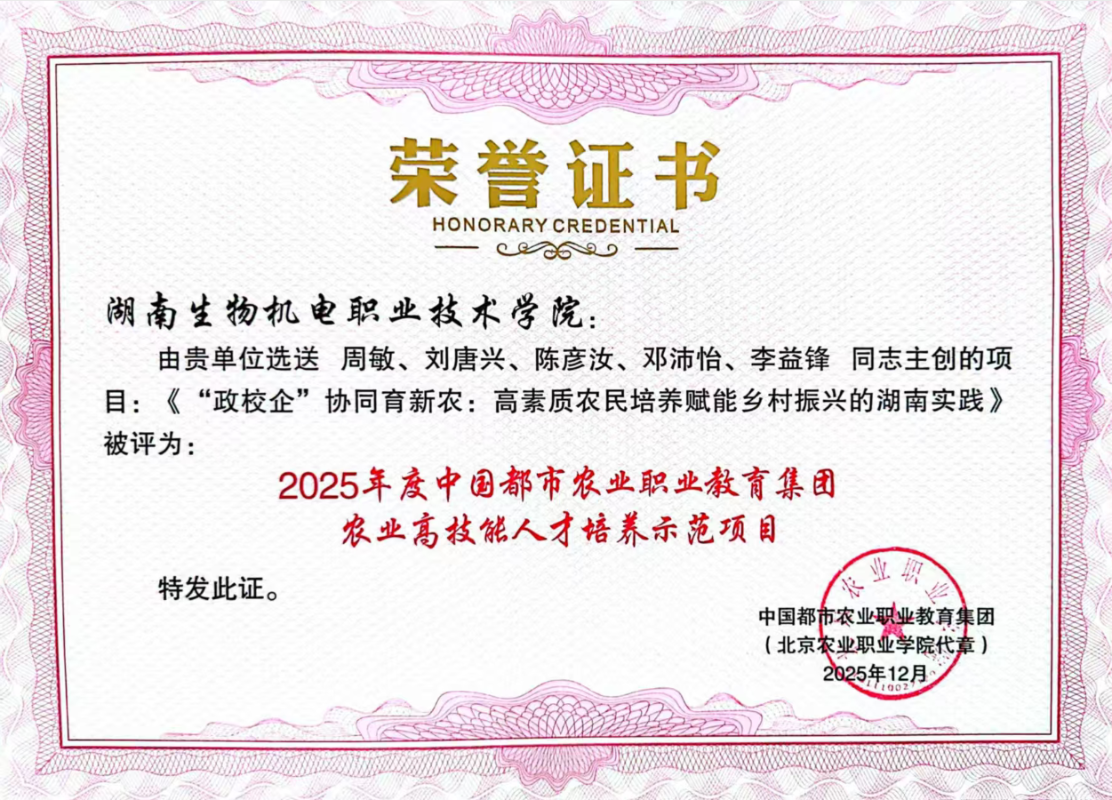植物科技学院作品获评中国都市农业职业教育集团农业高技能人才培养示范项目